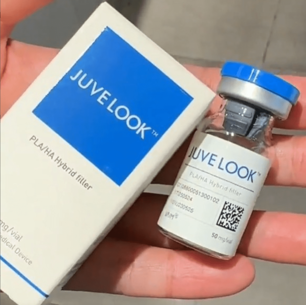 Juvelook is a self-tissue regeneration collagen booster with the combination of macromolecule PLA (Poly D. L-lactide) and HA (Hyaluronic Acid-Sodium Hyaluronate) inside the human tissue. After being injected in the skin, it accelerates the production of collagen that creates natural elasticity thus improving skin texture and fine wrinkles.