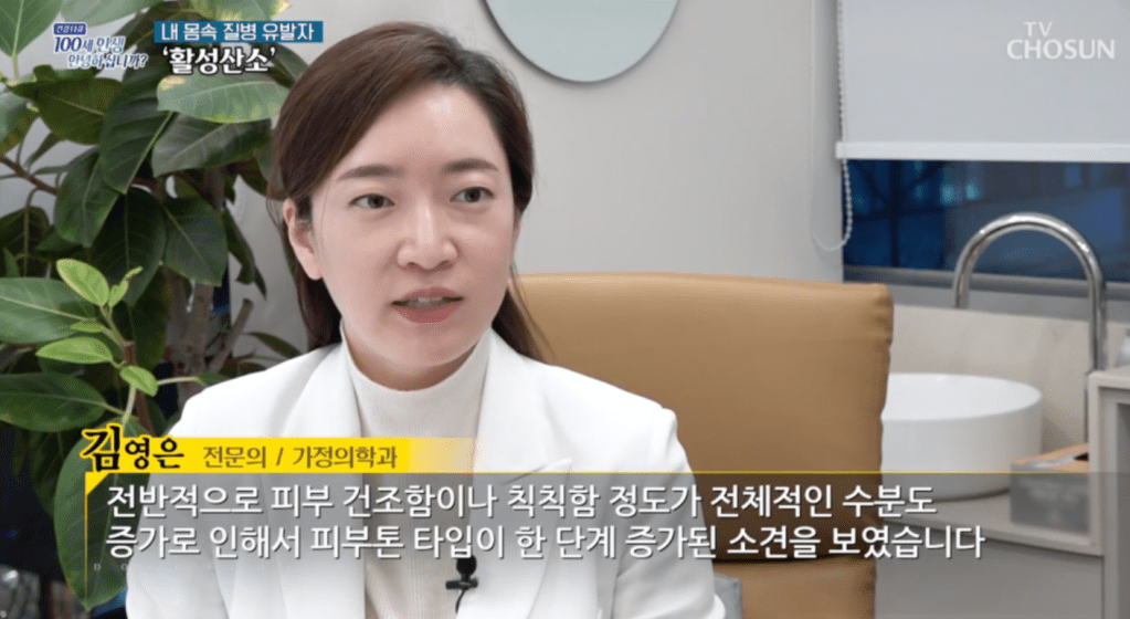 Let’s take a quick look at TV Chosun’s <Hello Age 100>, a program that Dr. Kim appeared on as an advice doctor. In this episode, Dr. Kim explains the effects of glutathione through an actual experiment with two patients.